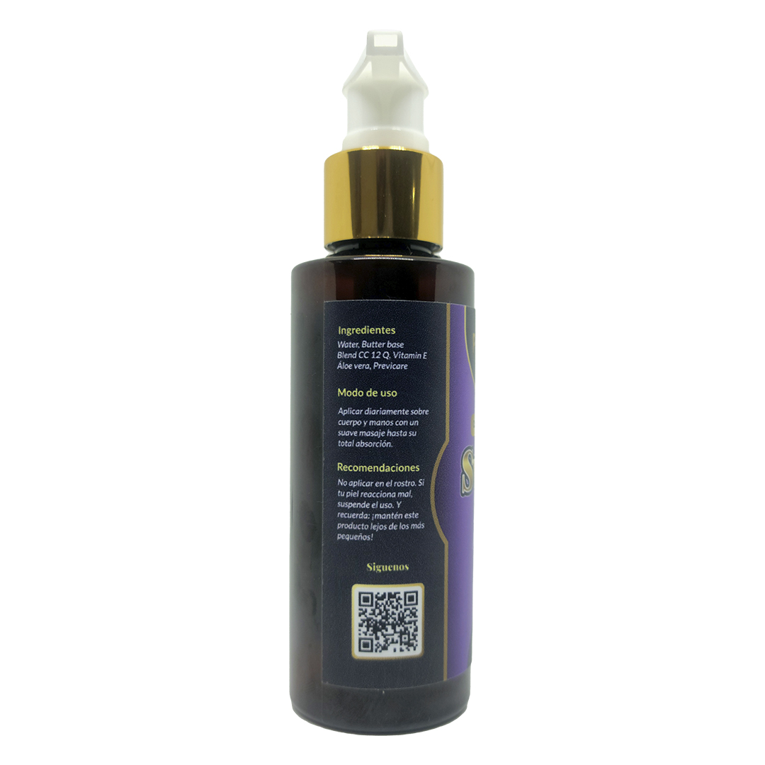 Crema corporal de aloe vera personalizada con tu fragancia, en envase cilíndrico de 120 ml con dispensador tipo cremera. Ideal para llevar y aplicar en cualquier momento.