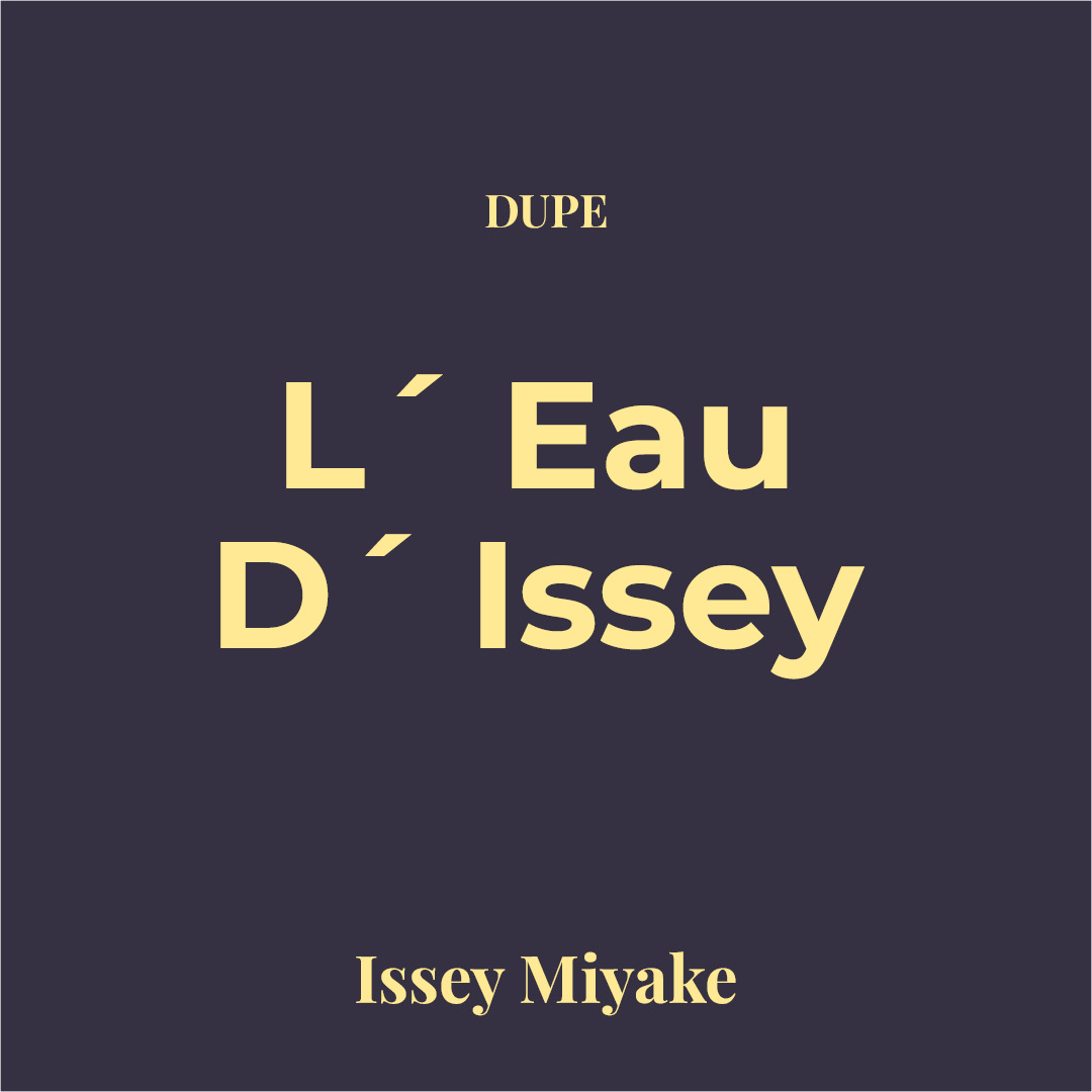 Dupe L’Eau d’Issey de Issey Miyake Point G Perfumeria. Floral-acuática pura y luminosa, con notas como flor de loto, melón, fresia, agua de rosas, rosa, calone y ciclamen; corazón etéreo de muguete, azucena, peonía de agua y clavel, sobre un fondo limpio de almizcle, nardos, maderas exóticas, osmanto, cedro, sándalo y ámbar. Aporta sensación cristalina y elegante con estela discreta–media que no empalaga. Ideal para el día a día, oficina y climas cálidos a templados.