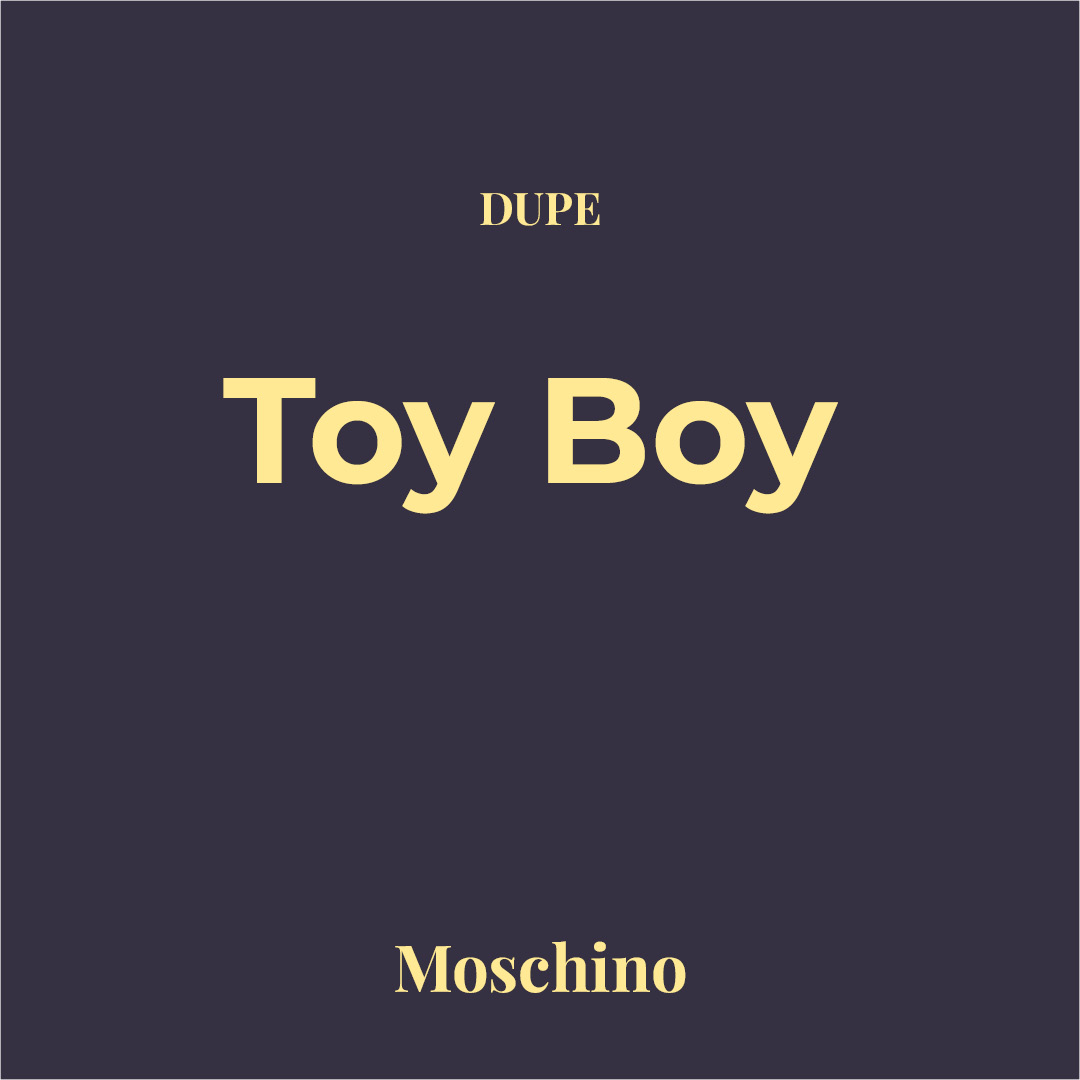 Dupe Toy Boy de Moschino Point G Perfumeria. Especiada-amaderada atrevida y moderna, con notas como pimienta rosa, pera, nuez moscada, elemí y bergamota; corazón de rosa, clavo, magnolia y lino, sobre un fondo envolvente de cachemira, vetiver de Haití, sándalo, Sylkolide y ámbar. Aporta una estela sensual con carácter fashion y muy buena fijación sin saturar. Ideal para noches, salidas urbanas y climas templados a frescos.